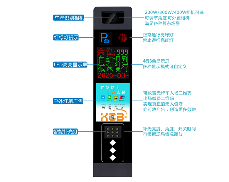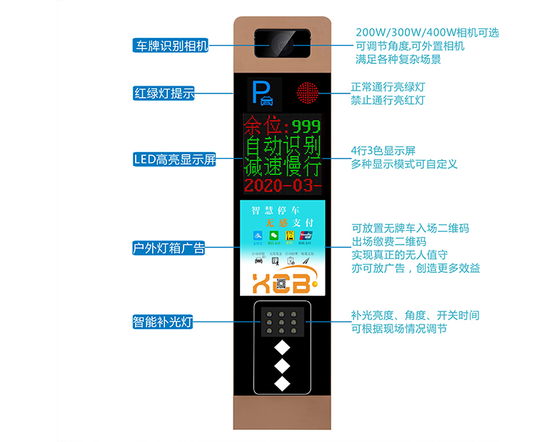 2、外加可調(diào)節(jié)角度的遮光罩,擋光防止相機(jī)曝光,同時(shí)也擋雨,提高識(shí)別率;