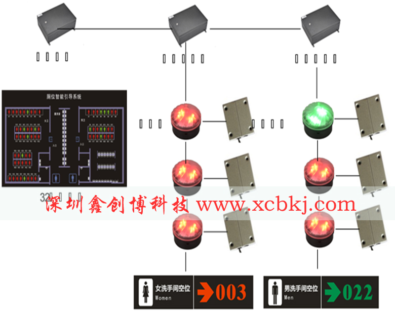 3、LED燈箱顯示屏,顯示男女洗手間空余蹲位的數(shù)量;